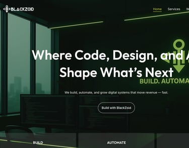 BlackZoid isn’t just another agency — it’s where AI, automation, and creative strategy converge to build the next generation of digital products. We combine cutting-edge technology with design and marketing to deliver websites, apps, and growth systems built for speed, scale, and impact.